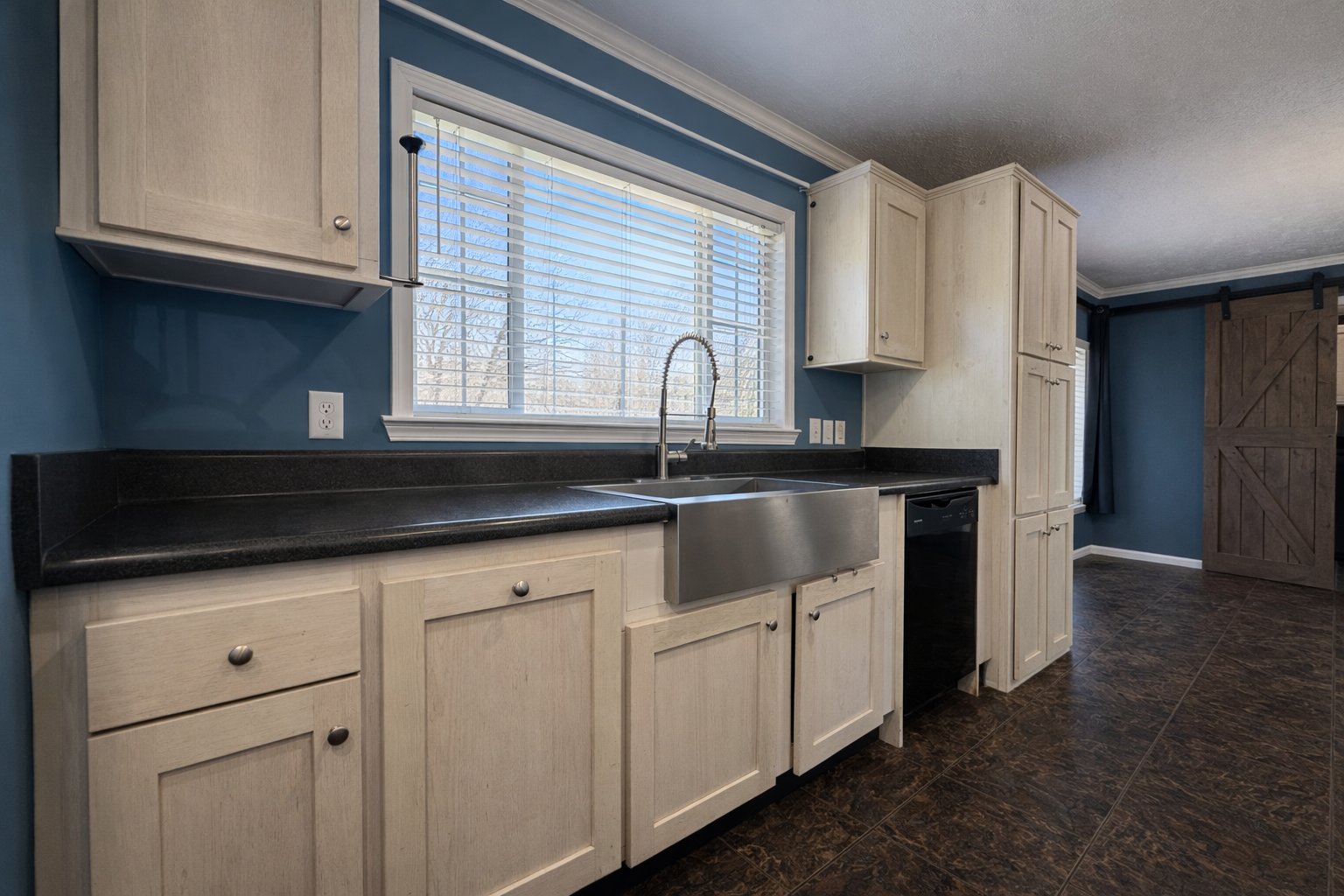 Another thoughtful touch is the separate laundry room, which is connected to the main living area by stylish barn doors. It is both functional and visually appealing, adding a bit of character while keeping practical spaces well organized.
