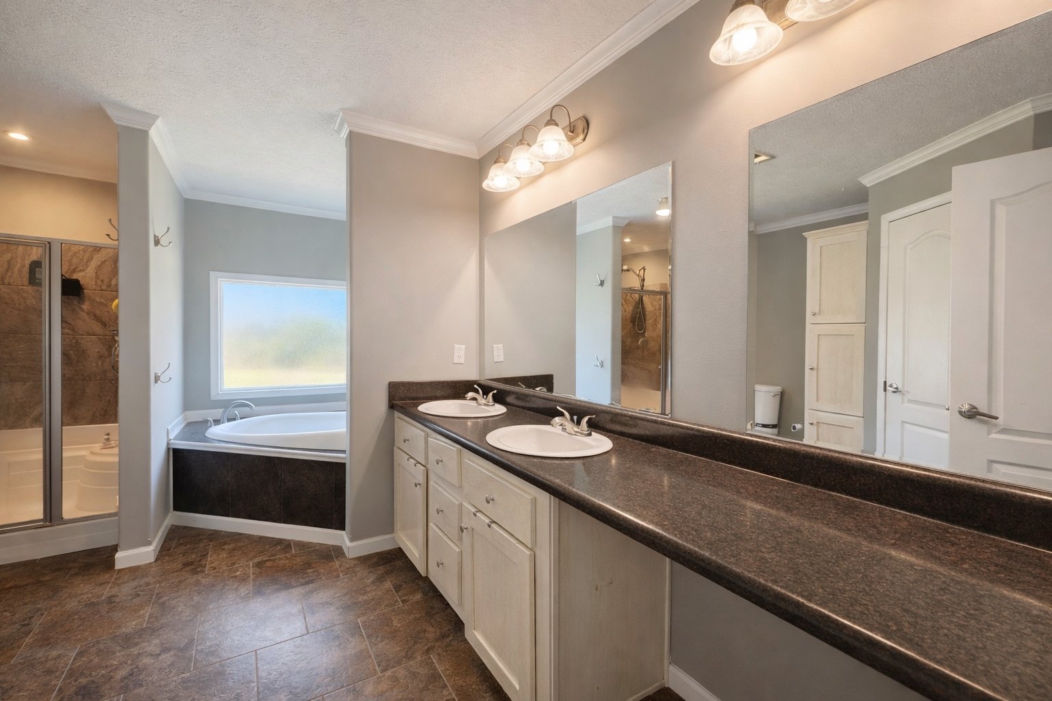 The primary suite offers a relaxing retreat with standout features that give it extra charm. The shiplap alcove for the bed creates a distinctive focal point and gives the room a custom feel. In the primary bath, you will find a layout designed for comfort, including a garden tub, walk-in shower, and double sinks with a spacious vanity. It is a setup that combines everyday convenience with a more spa-like feel.