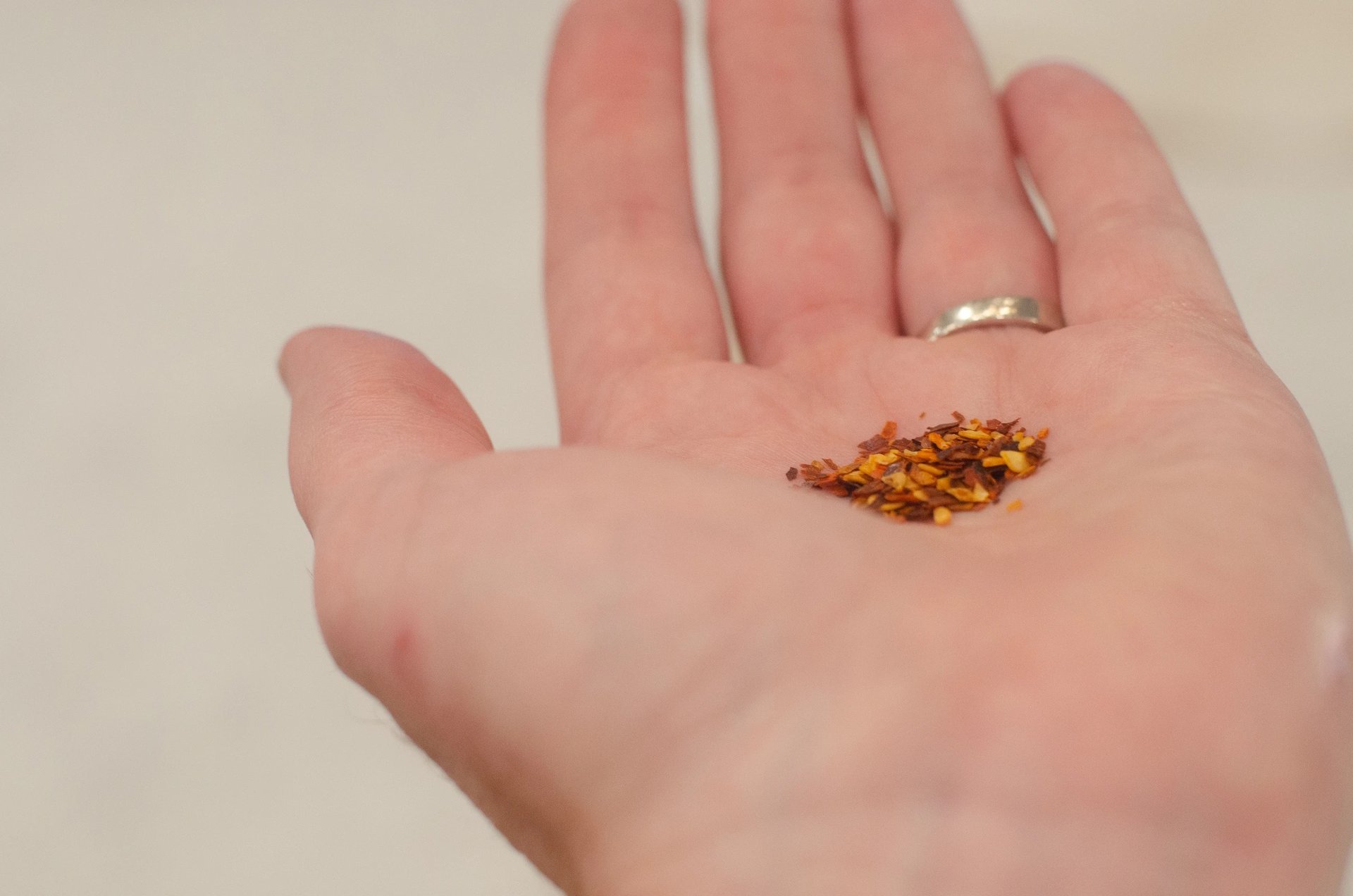 Then put your cheese back in with the basil, pine nuts, salt, a few cranks of pepper and red pepper flake and pulse a few more times.