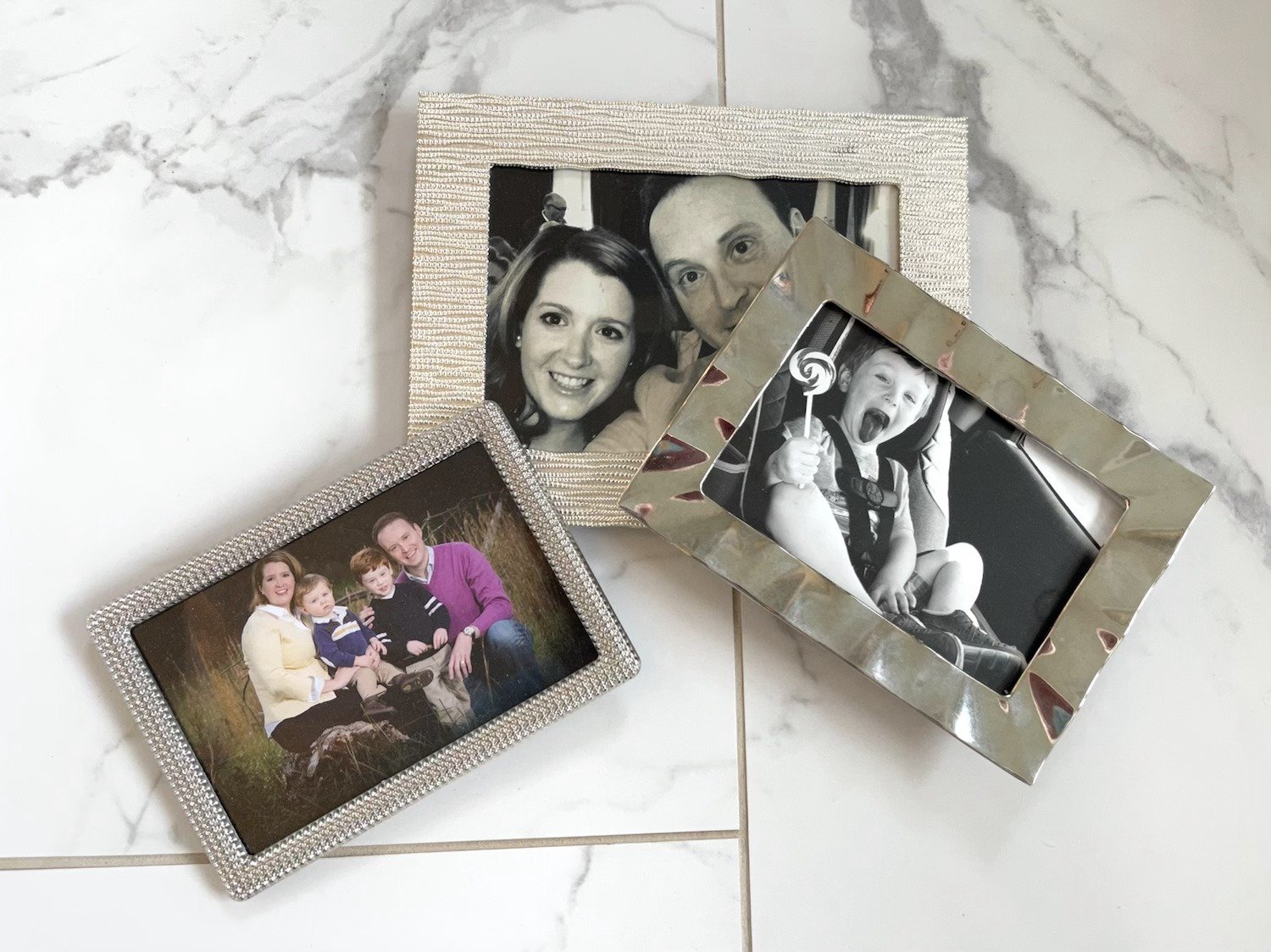 This is my mother’s favorite gift! Whether you have a professional photo shoot or just simply pull photos from your phone, printing out photos and placing them in frames is a wonderful gift. Look for frames on sale at Pottery Barn and silver frames at Marshall’s. Having all the photos in silver frames with different designs helps to unify disparate photographs creating high-end harmony.