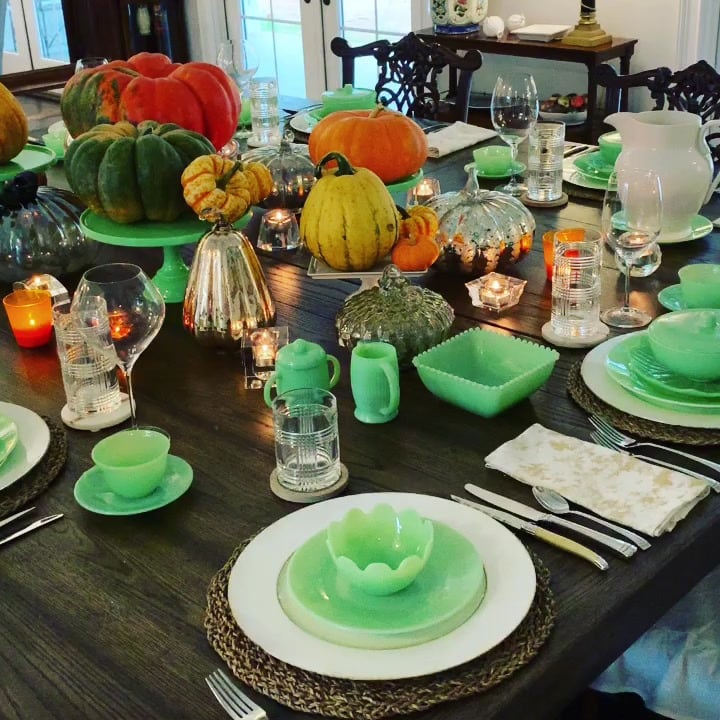 After many years we have a collection of various different sizes and shapes that we pull out to decorate our October and November tables. This year we found we had so many glass pumpkins we did not want to buy many live pumpkins to decorate our home. One of the things I like most about mercury glass and glass pumpkins is you are not trying to convince people they are real as with silk or artificial pumpkins. We know they are not real but they are beautiful pieces of art that make your home feel like autumn has arrived. So this year start your own collection of glass pumpkins and remember you can find many of them discounted as autumn turns to the holiday season.