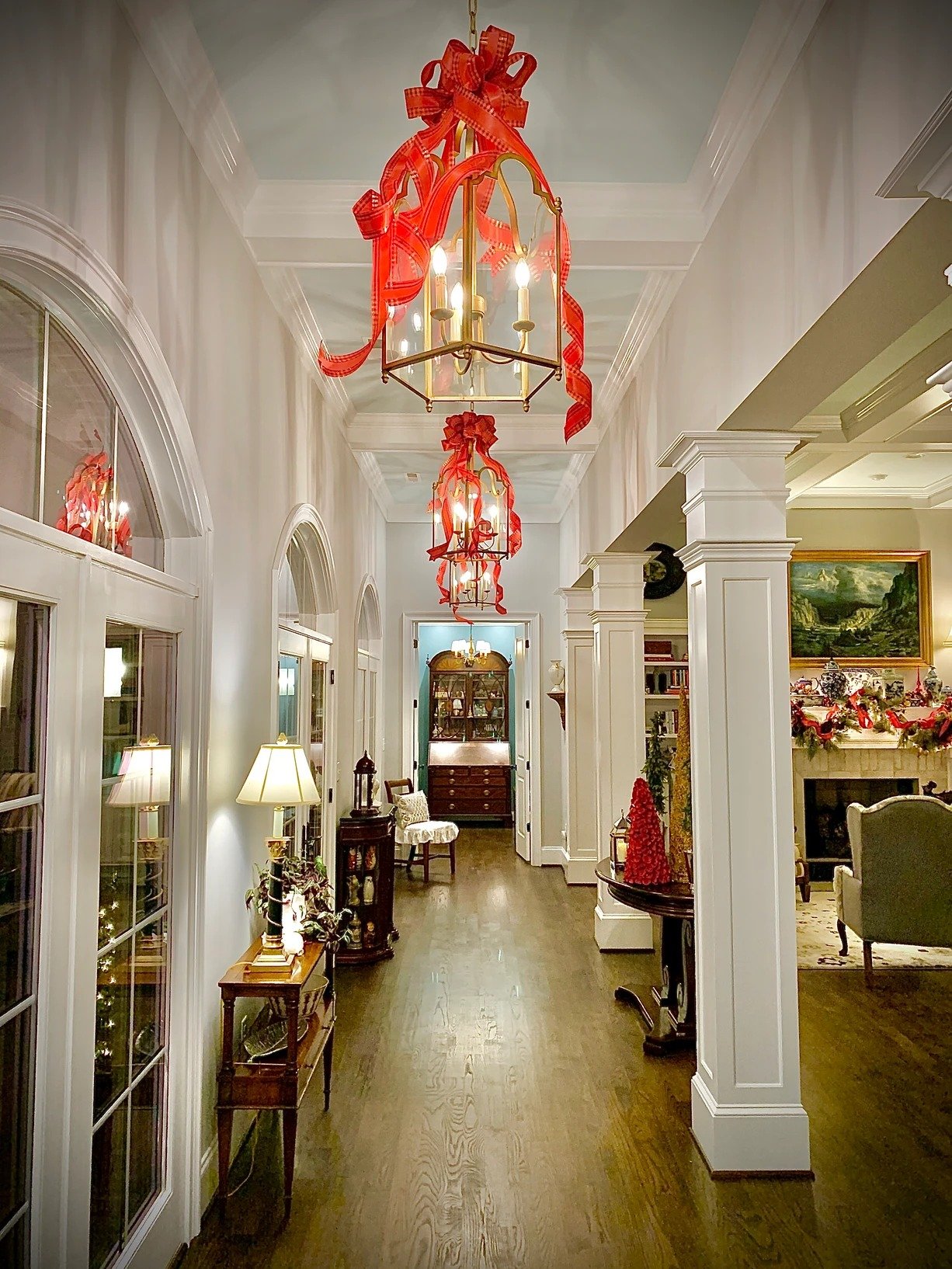 Here are some of my chandeliers in our home this year below. #gardeninginmybowtie