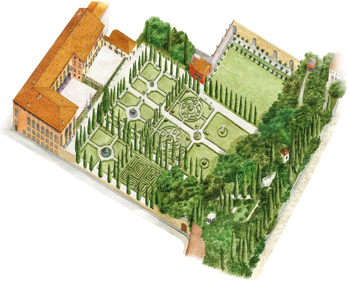Engraving of Giardino Guisti from giardinogiusti.com