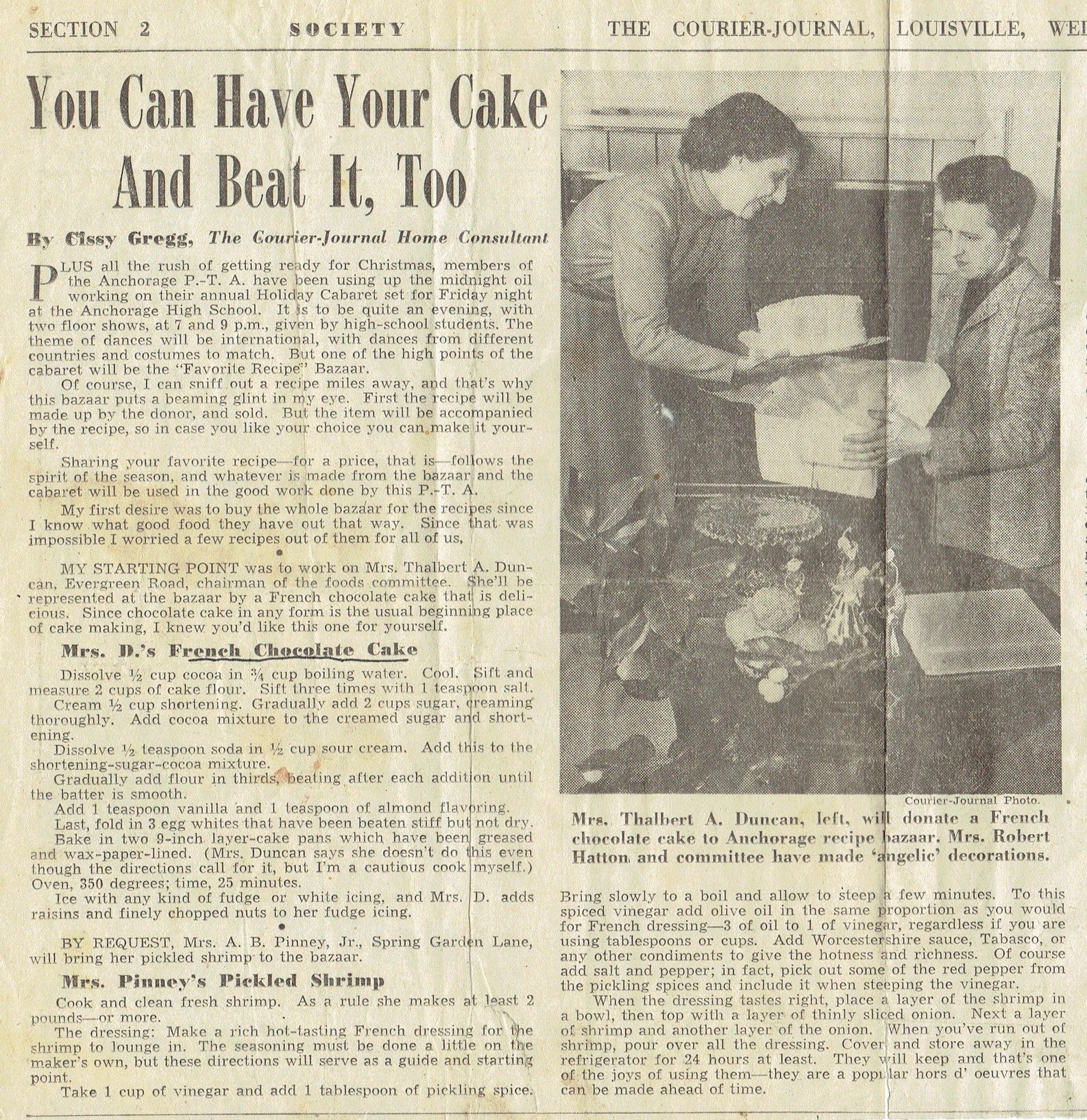 During the holiday season our church's music secretary, Monica Davis, related a story of her grandmother or "Maw Maw" as she called her. Monica's Maw Maw had a staple chocolate cake she made for her grandchildren on her Kentucky farm. The kids would grab a piece and hang over her porch letting the crumbs fall onto the ground to be eaten by Maw Maw's chickens. Maw Maw's recipe, called Mrs. D's French Chocolate Cake, was cut from the Louisville Newspaper in 1948 from a local Kentucky high school bake sale. This is the stuff of Southern culinary legend so I knew Monica needed to be a guest on my vlog.