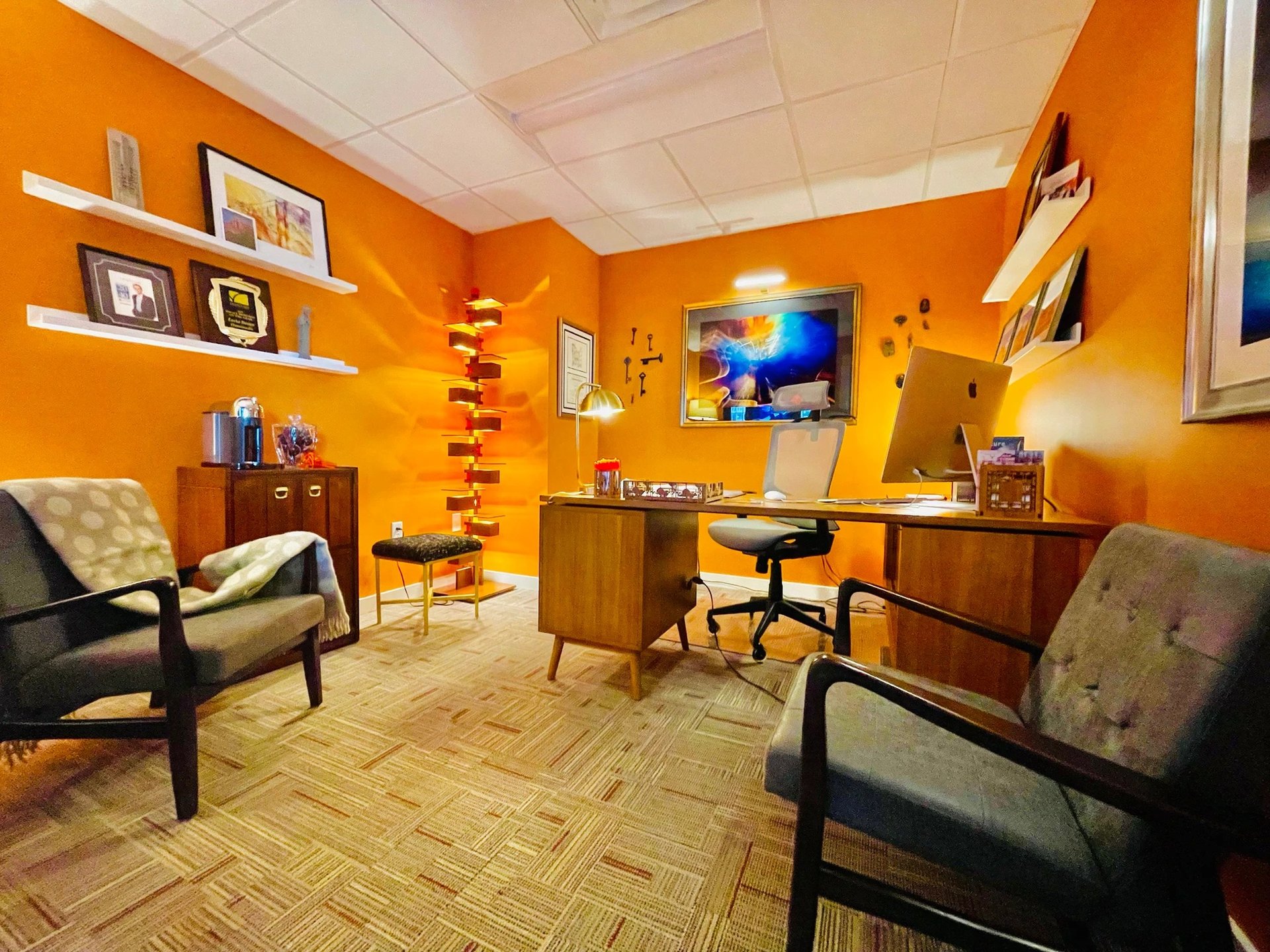 Guest were offered time to view my new office space which was a joy to design and refreshments, including a magnum of champagne, coffee and bourbon were offered along with party, favors of pens, suckers and brochures.