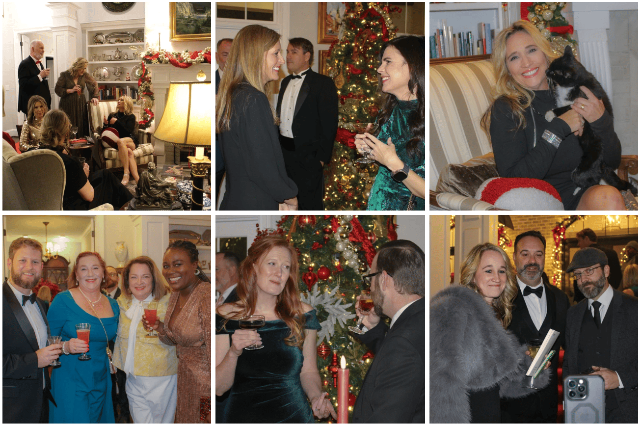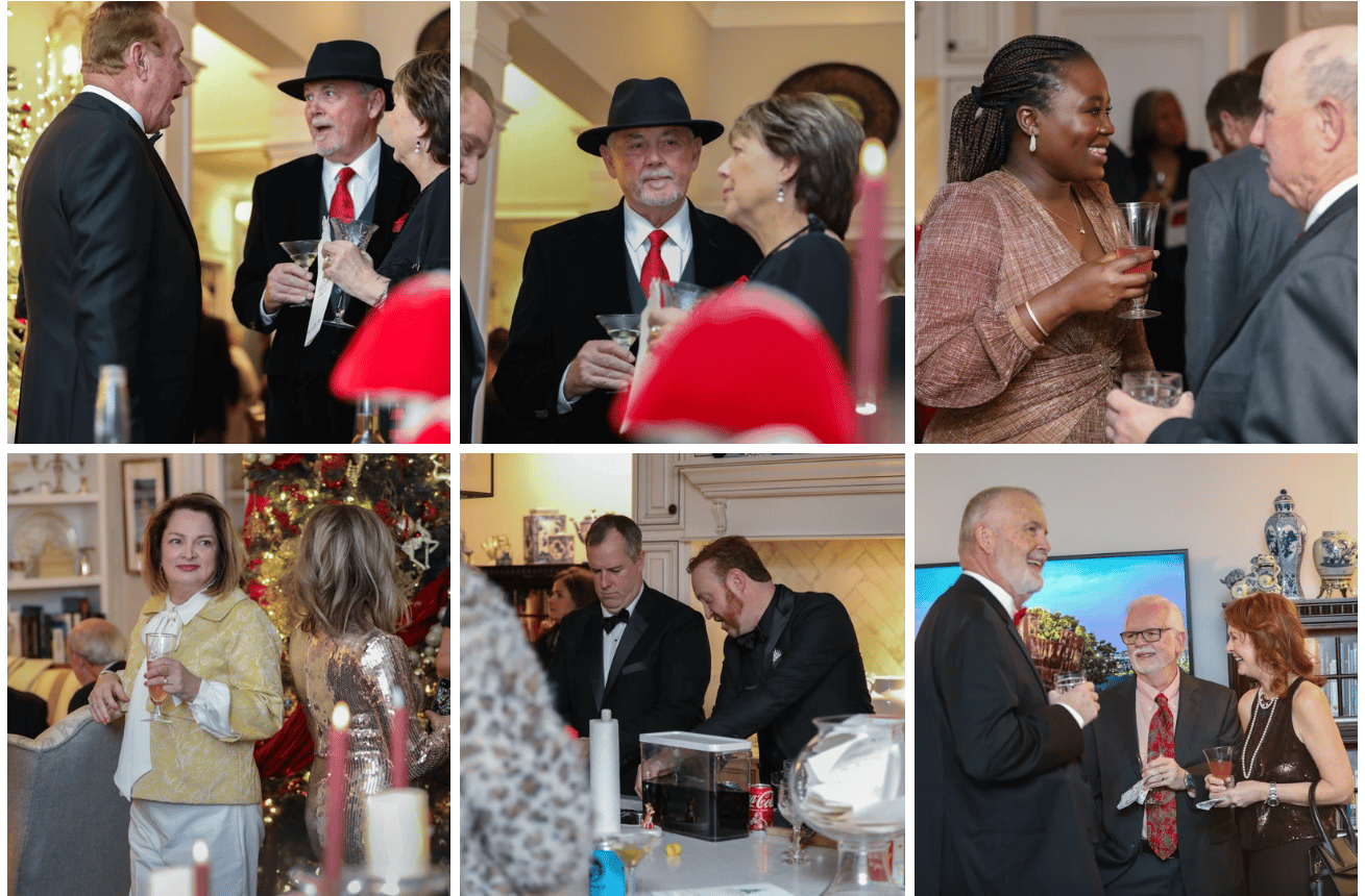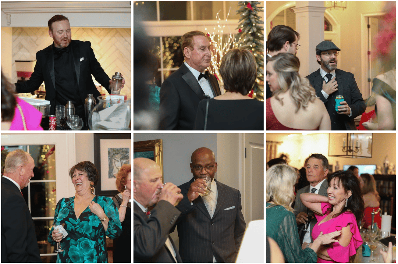 Guests arrived dressed in their finest formal wear and red carpet looks, perfectly matching the glitz and glamour of the occasion. The Locke Home was transformed into a holiday wonderland, adorned with five Christmas trees, each twinkling with lights and festive decor that set the mood for a night of celebration.