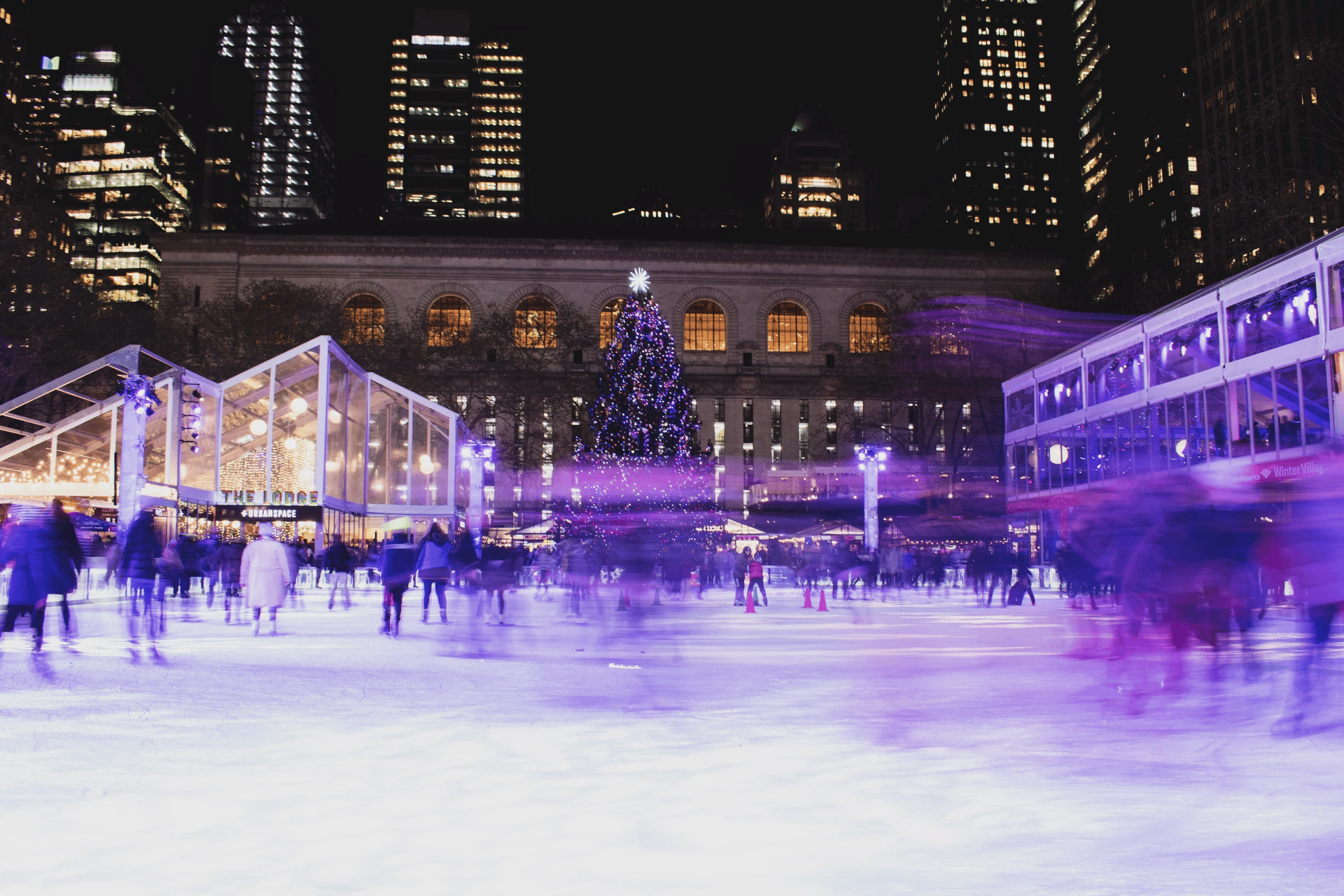 The Ice Skaters at Rockefeller might be more famous but the skyline around Bryant Park and its larger rink never disappoint. The park is actually built on the roof of the Public Library's storage. Years ago this was called "Needle Park" because of all the drugs, but now it is a jewel of mid-town. Wolman Rink in Central Park is also a good place to go skating.