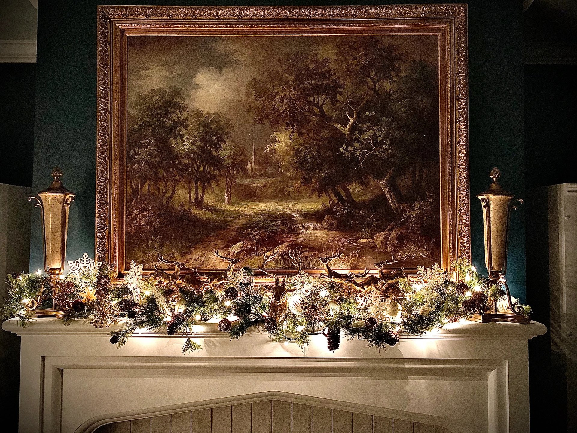 Nuetrals with white and soft metallics are really on trend this year. Brown, grey and tan brings a soft woodland feel to your home and blends with the grey and other neutrals so popular in interior design today. Here is my library mantle below with frosty neutrals.